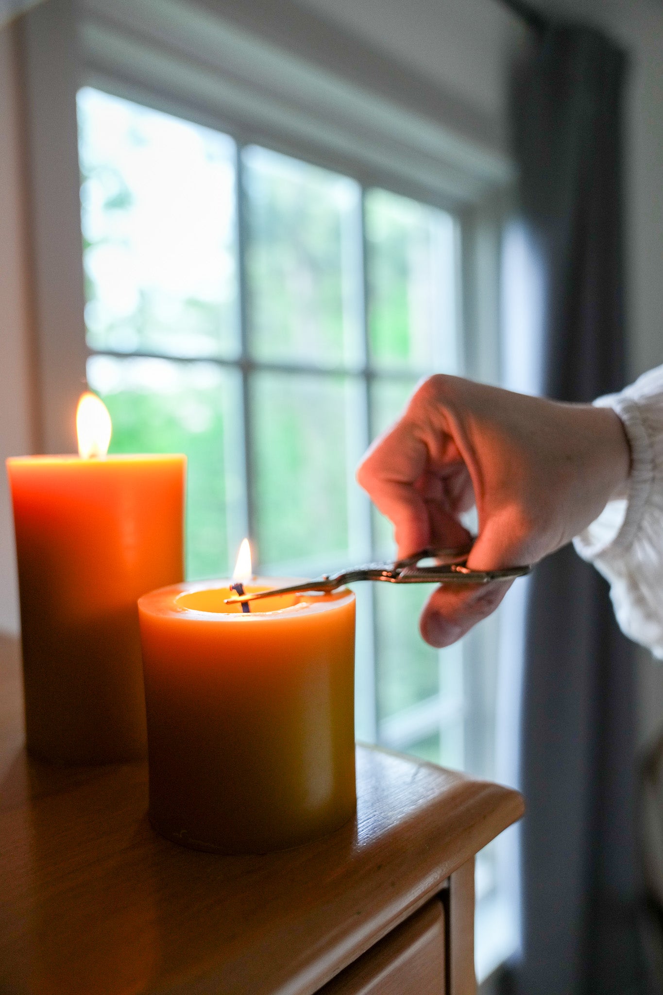- Blow out the candle, trim the wick to 1/4 inch, and relight.