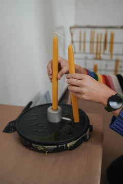 Every Slow Burn candle is made by hand out of the home studio of our founder, Sara Wait, in St. Paul, MN, using 100% pure beeswax sourced from local, family-run apiaries. The wax is triple-filtered for purity, then poured with intention into beautifully curated molds or hand dipped with care. Each candle is designed to burn cleanly and slowly, reflecting Slow Burn’s deep commitment to sustainability, artistry, and exceptional quality.