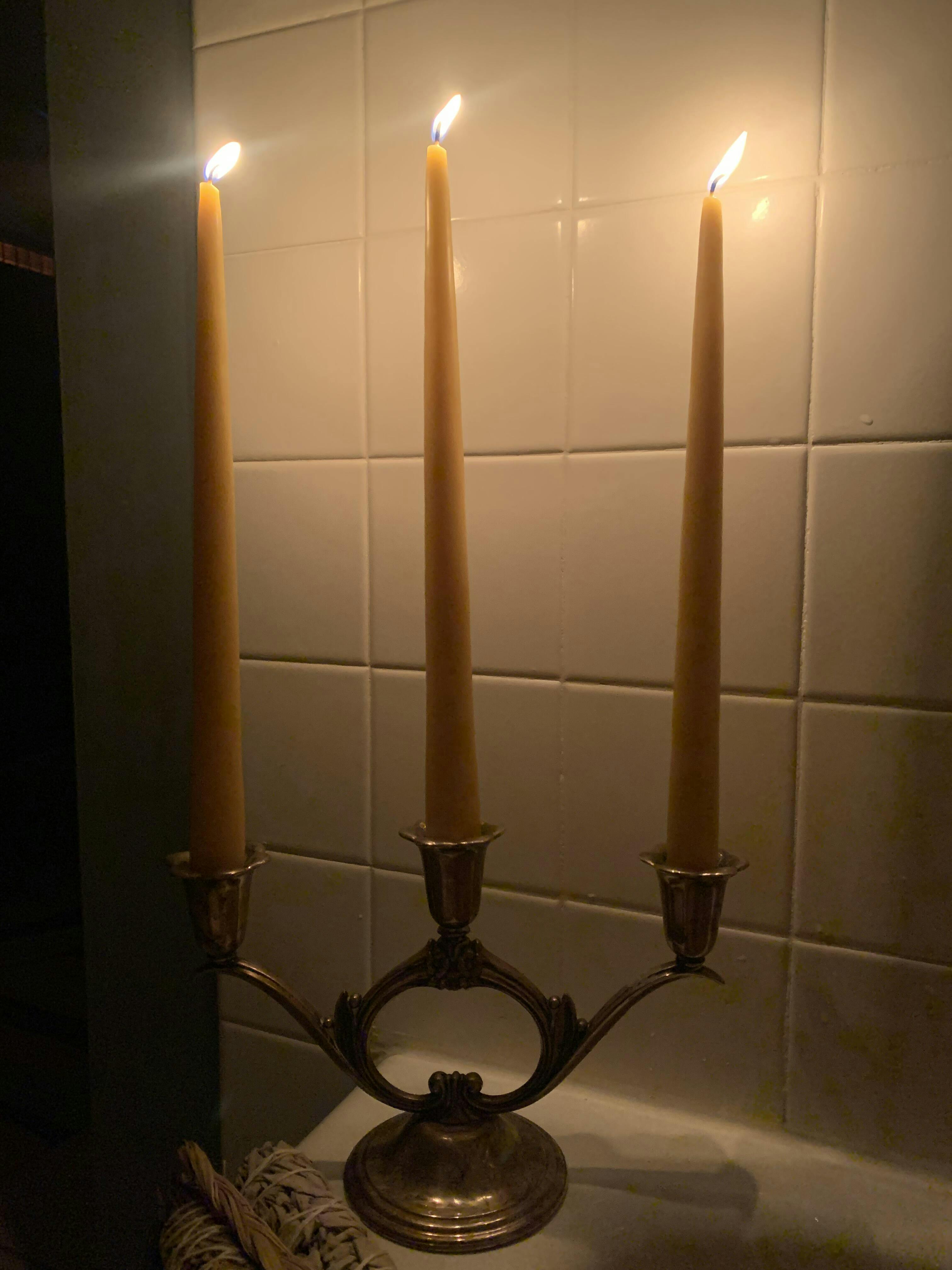 Tapers are sensitive to their surroundings. Burn them in a draft-free space to encourage an even, dripless burn. A gentle environment = a steady flame.
