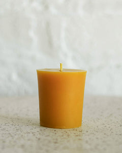 Crafted from 100% pure, locally sourced beeswax, our votives are designed to glow beautifully in your favorite glass vessel. Each one is hand-poured with care, offering a clean, soot-free burn and the subtle, natural aroma of beeswax: no added scents, dyes, or chemicals.