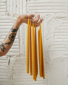 Tapers are sensitive to their surroundings. Burn them in a draft-free space to encourage an even, dripless burn. A gentle environment = a steady flame.