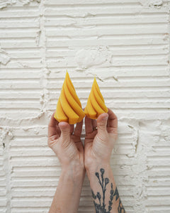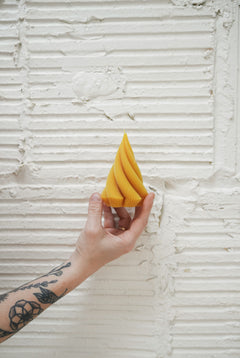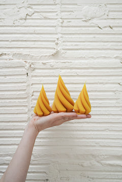 Every Slow Burn candle is made by hand out of the home studio of our founder, Sara Wait, in St. Paul, MN, using 100% pure beeswax sourced from local, family-run apiaries. The wax is triple-filtered for purity, then poured with intention into beautifully curated molds or hand dipped with care. Each candle is designed to burn cleanly and slowly, reflecting Slow Burn’s deep commitment to sustainability, artistry, and exceptional quality.