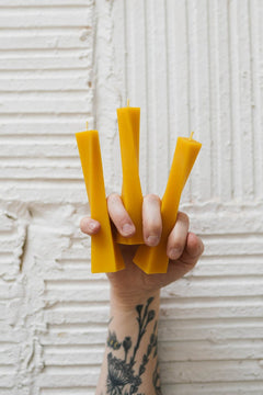 Every Slow Burn candle is made by hand out of the home studio of our founder, Sara Wait, in St. Paul, MN, using 100% pure beeswax sourced from local, family-run apiaries. The wax is triple-filtered for purity, then poured with intention into beautifully curated molds or hand dipped with care. Each candle is designed to burn cleanly and slowly, reflecting Slow Burn’s deep commitment to sustainability, artistry, and exceptional quality.
